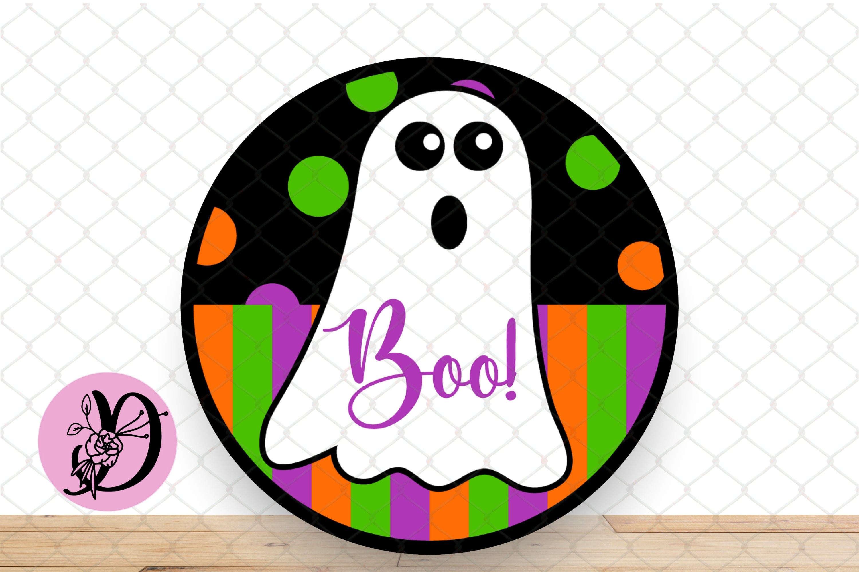 Boo! Colorful Ghost Halloween Wreath Sign