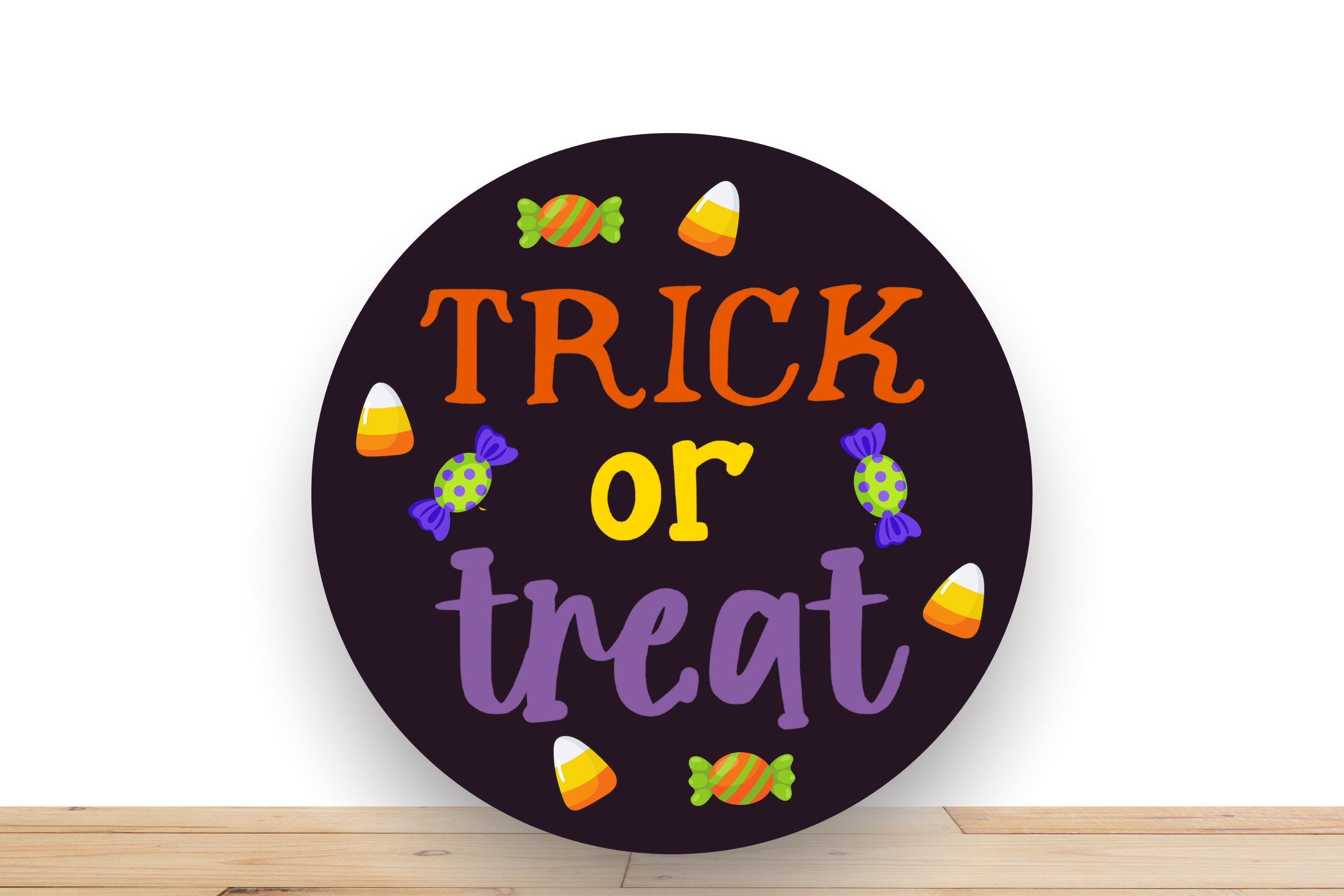This playful round wreath sign is bursting with Halloween spirit! Featuring "Trick or Treat" in bold colors, surrounded by classic candy corn and wrapped sweets, it’s the perfect pop of color and fun for any wreath, door, or festive display.