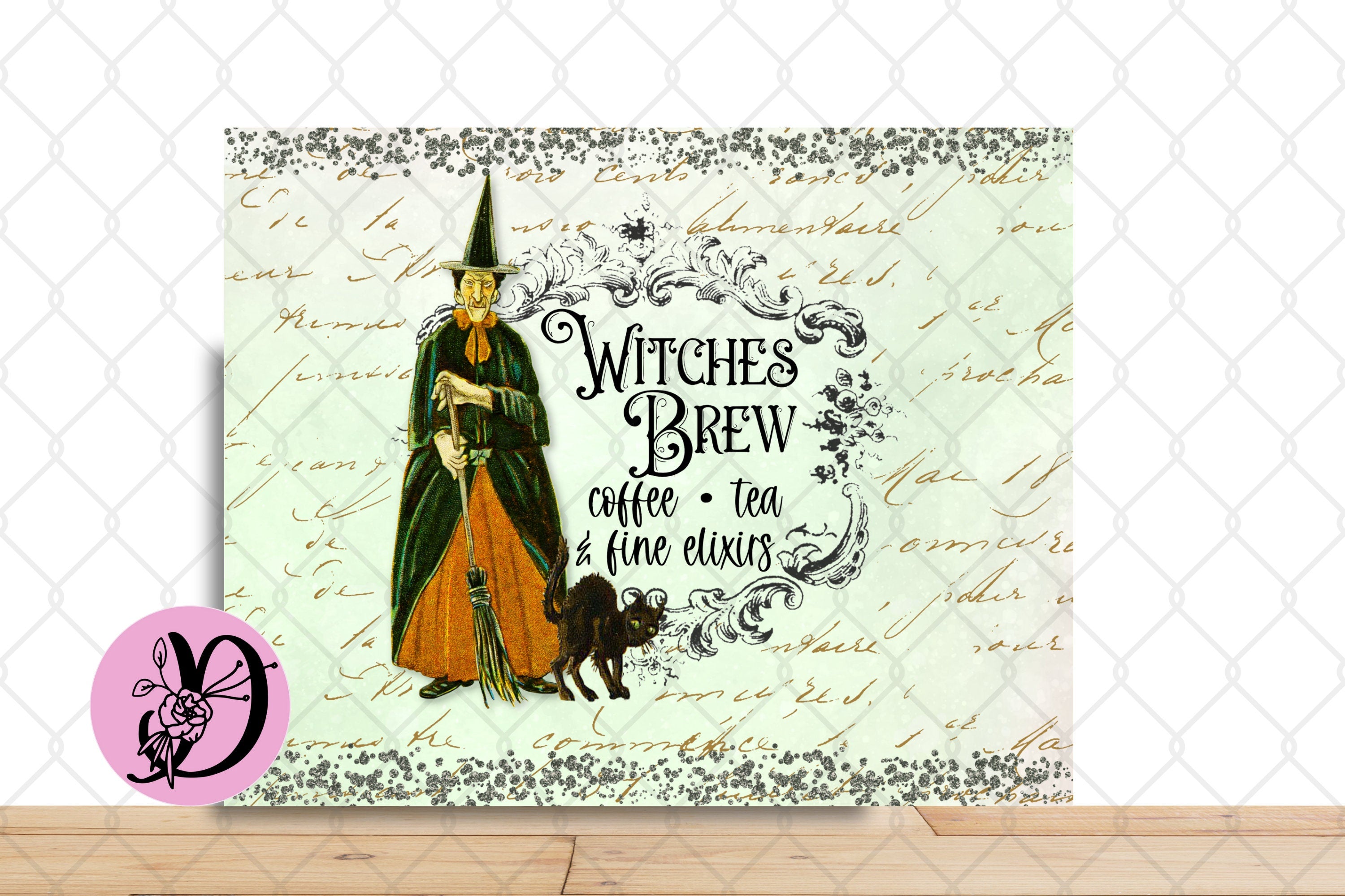 Serve up a little spooky charm with this vintage-style “Witches Brew” sign featuring a classic witch, her black cat, and a handwritten script background. Perfect for Halloween wreaths, kitchen decor, or witchy coffee bar setups. Add a little magic to your fall creations!