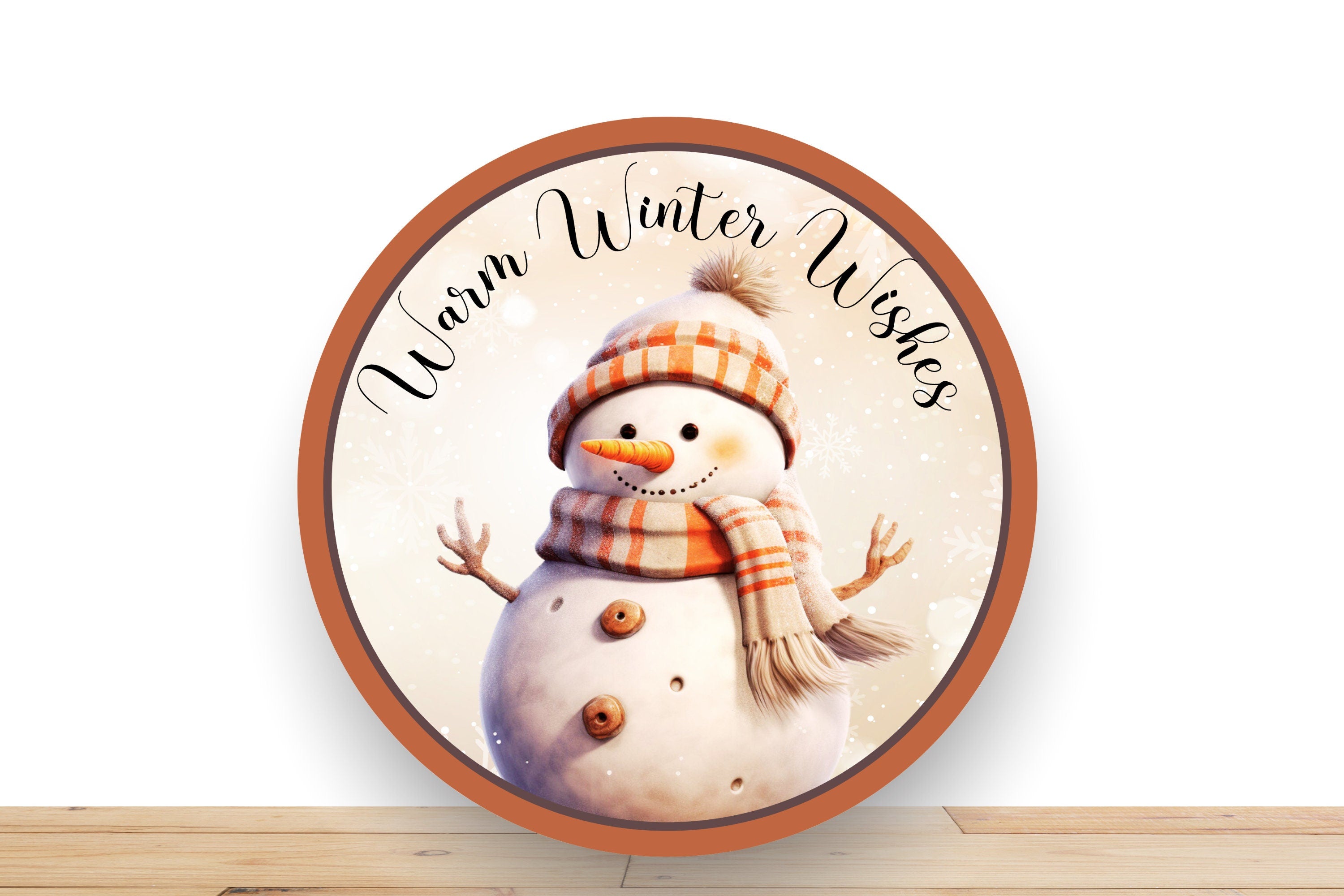 Welcome the winter season with this heartwarming snowman wreath sign. Dressed in cozy orange and cream, this cheerful snowman sends "Warm Winter Wishes" to all who pass by. Perfect for adding a touch of joy and warmth to your holiday decor, this sign is an inviting addition to any wreath or door.