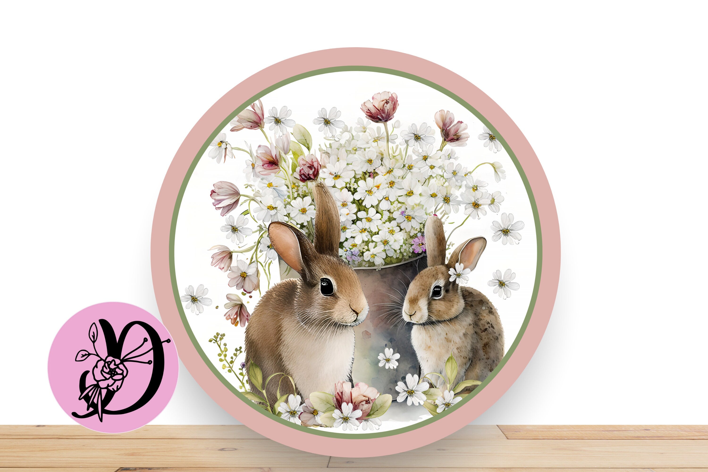 Bring a touch of springtime charm to your home with this beautiful wreath sign featuring two adorable bunnies surrounded by a bouquet of delicate daisies and wildflowers. Perfect for Easter or seasonal decor, this sign radiates warmth and natural beauty for any space.