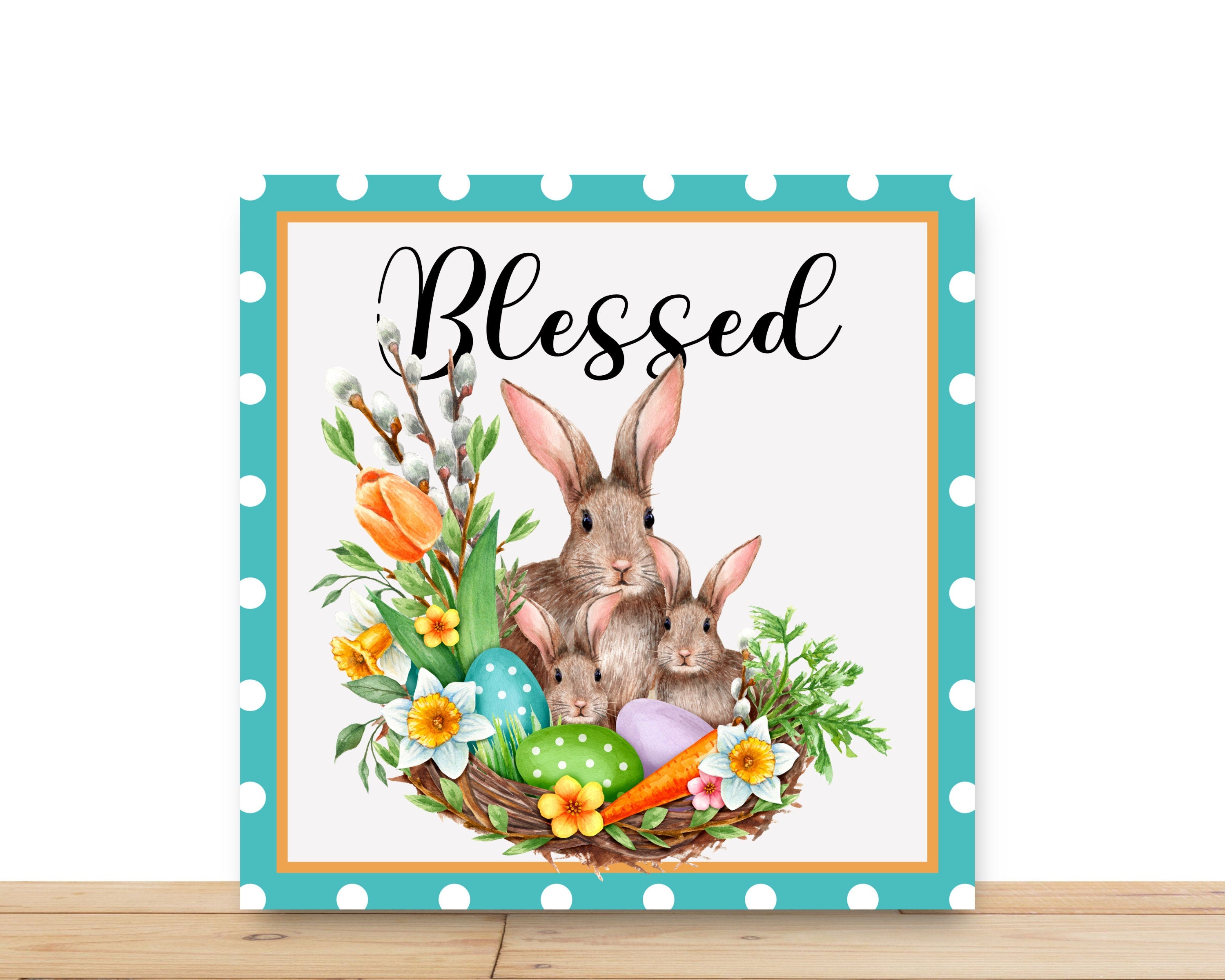 Add a touch of charm to your home with this delightful "Blessed" wreath sign featuring a loving bunny family nestled in a vibrant floral and egg-filled springtime design. Perfect for Easter decor or celebrating the renewal of spring with farmhouse charm.