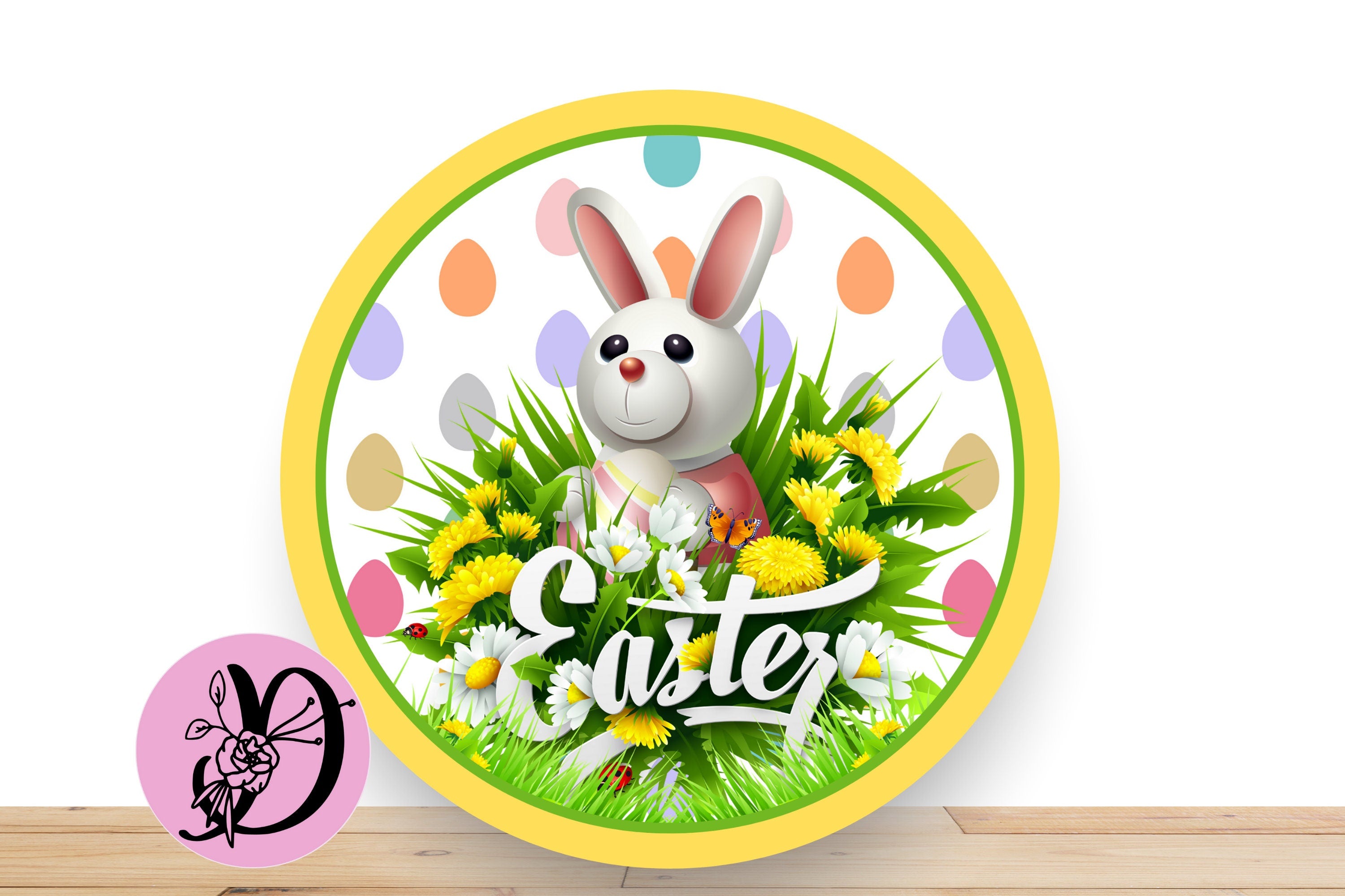 Brighten up your spring decor with this cheerful Easter wreath sign! Featuring a playful bunny surrounded by vibrant flowers, lush grass, and colorful Easter eggs, it’s the perfect festive accent for your home or front door.