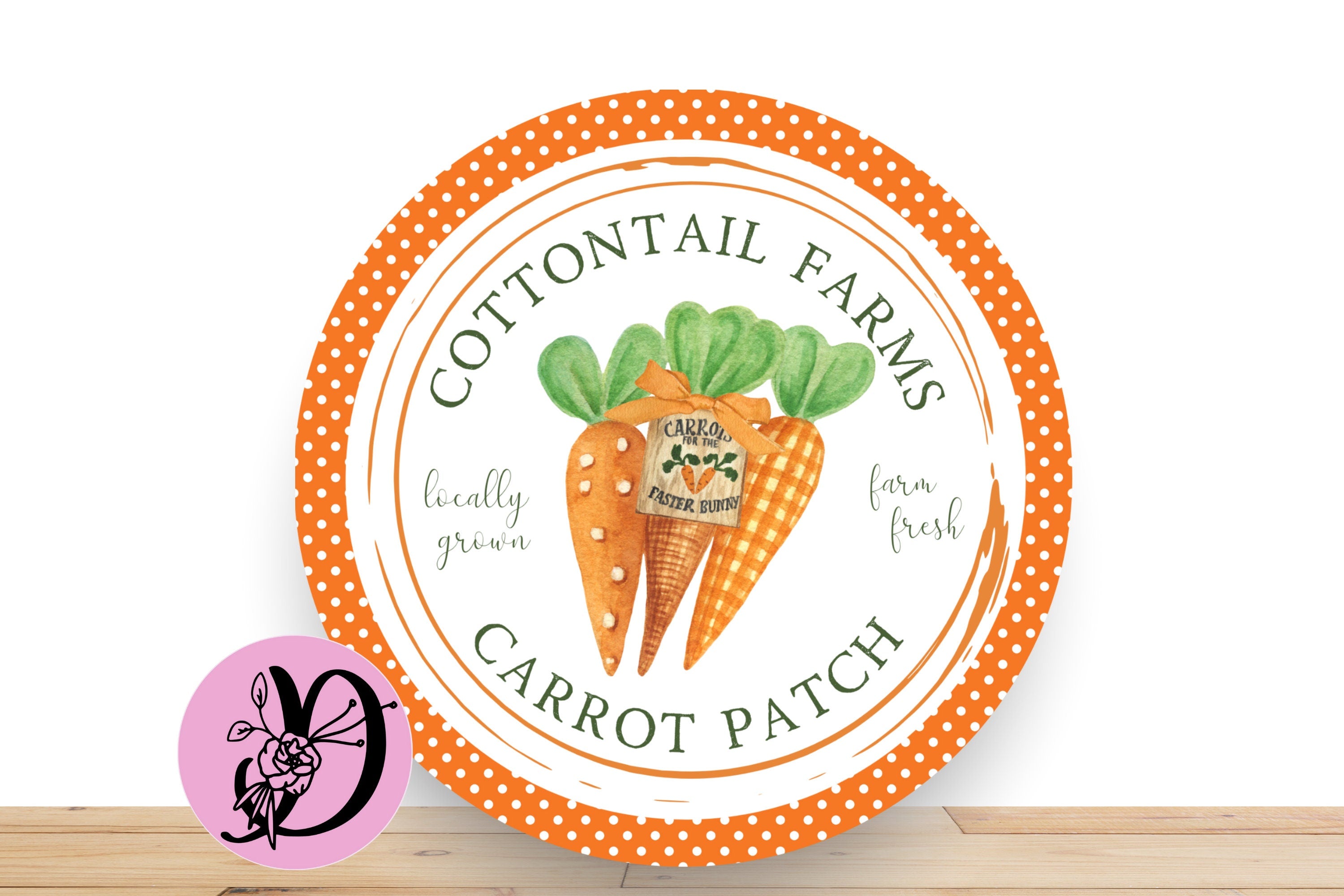 Celebrate the charm of spring with this delightful wreath sign featuring a "Cottontail Farms" design. Adorned with vibrant fabric carrots, a playful "Carrots for the Faster Bunny" tag, and a cheerful orange polka-dot border, this sign brings a rustic yet festive touch to your seasonal decor. Perfect for Easter and springtime decorating!