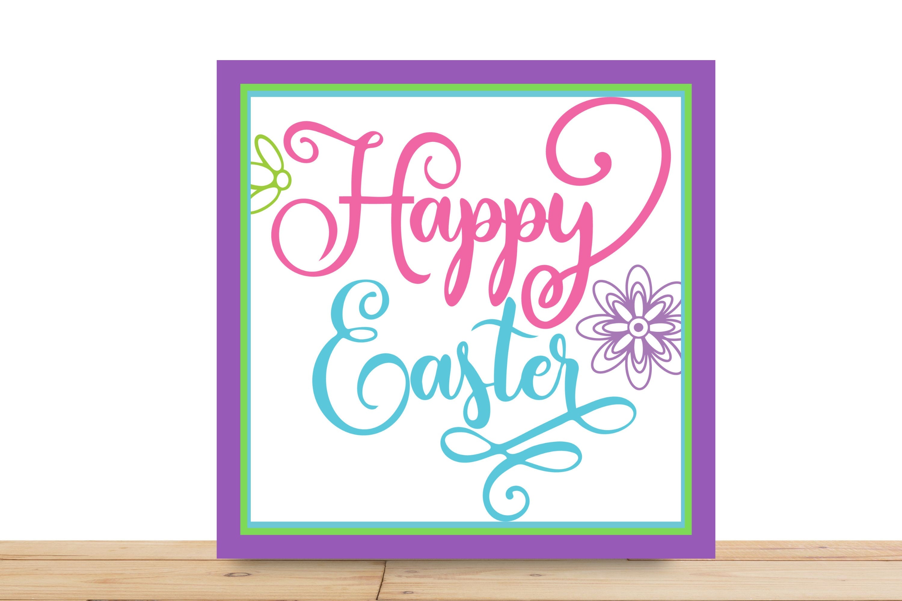Brighten up your Easter decorations with this colorful square wreath sign featuring elegant "Happy Easter" script in pink and blue surrounded by whimsical floral accents. A vibrant purple border completes this festive design, making it perfect for your front door or Easter display.