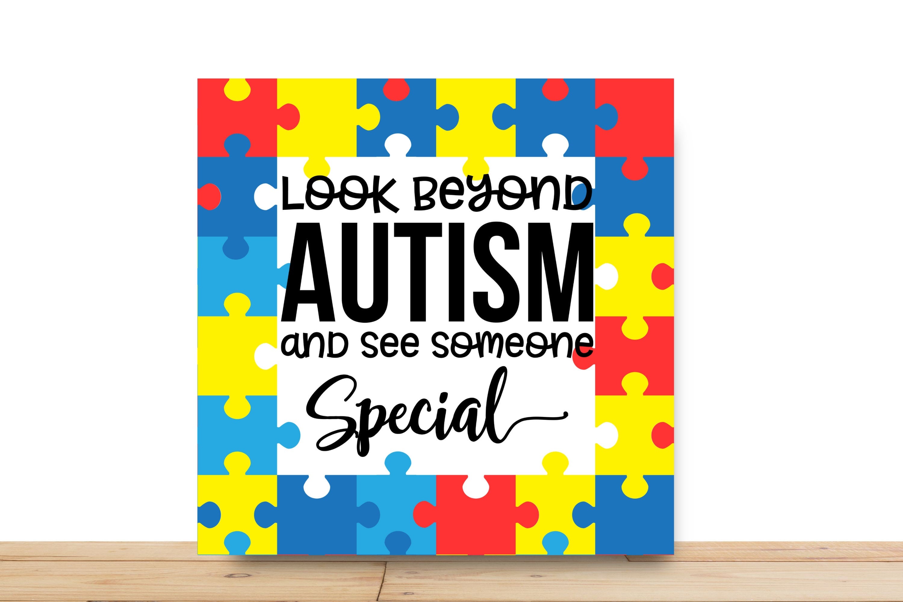 Show your support and appreciation with this thoughtful Autism wreath sign. Featuring a colorful puzzle piece design and the inspiring message, ‘Look beyond Autism and see someone special,’ this sign brings a heartwarming touch to any wreath or decor. Perfect for spreading awareness and love, this sign will be a meaningful addition to your home or gift for a loved one. The bright colors and bold lettering are sure to stand out and make an impact.