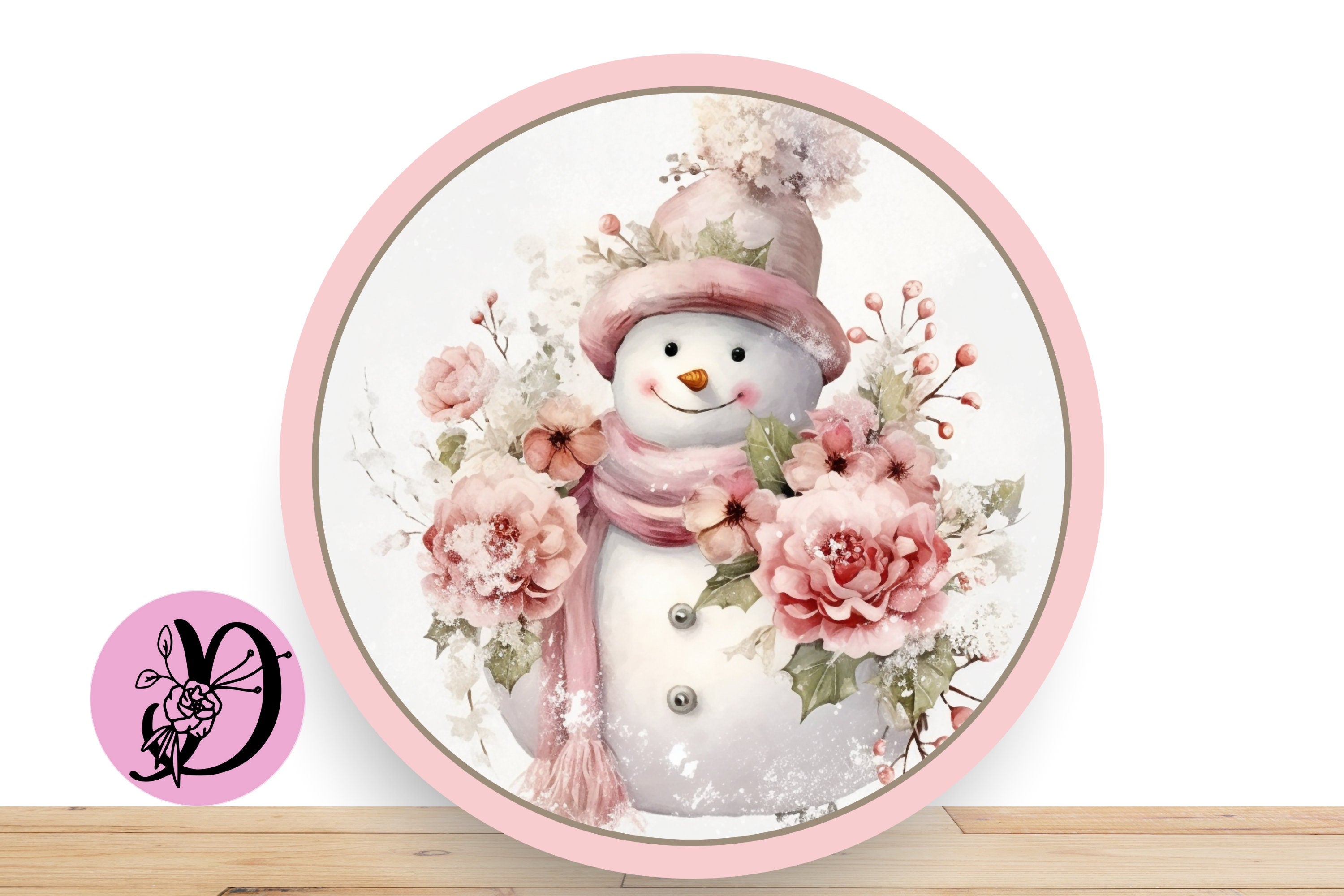 Elevate your holiday decor with a touch of elegance and femininity with our Christmas Wreath Sign featuring a pink and white snowman, delicate pink floral accents, and a snowy background. This enchanting sign adds a soft and sophisticated charm to your festive display.