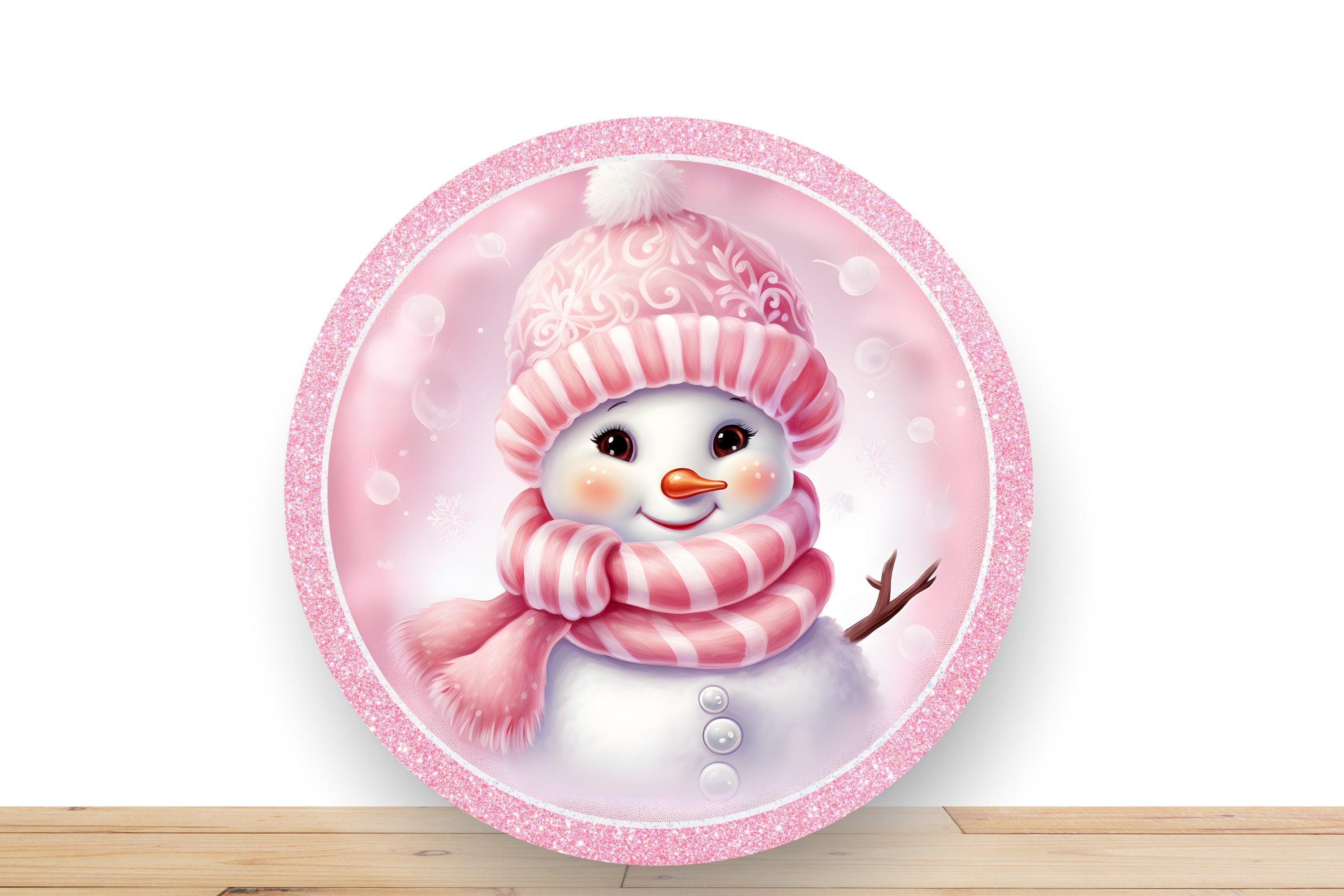 Add a touch of sweetness to your holiday decor with this adorable pink snowman wreath sign. Featuring a cozy winter hat and scarf, this cheerful snowman radiates warmth and joy, perfect for welcoming guests this season.