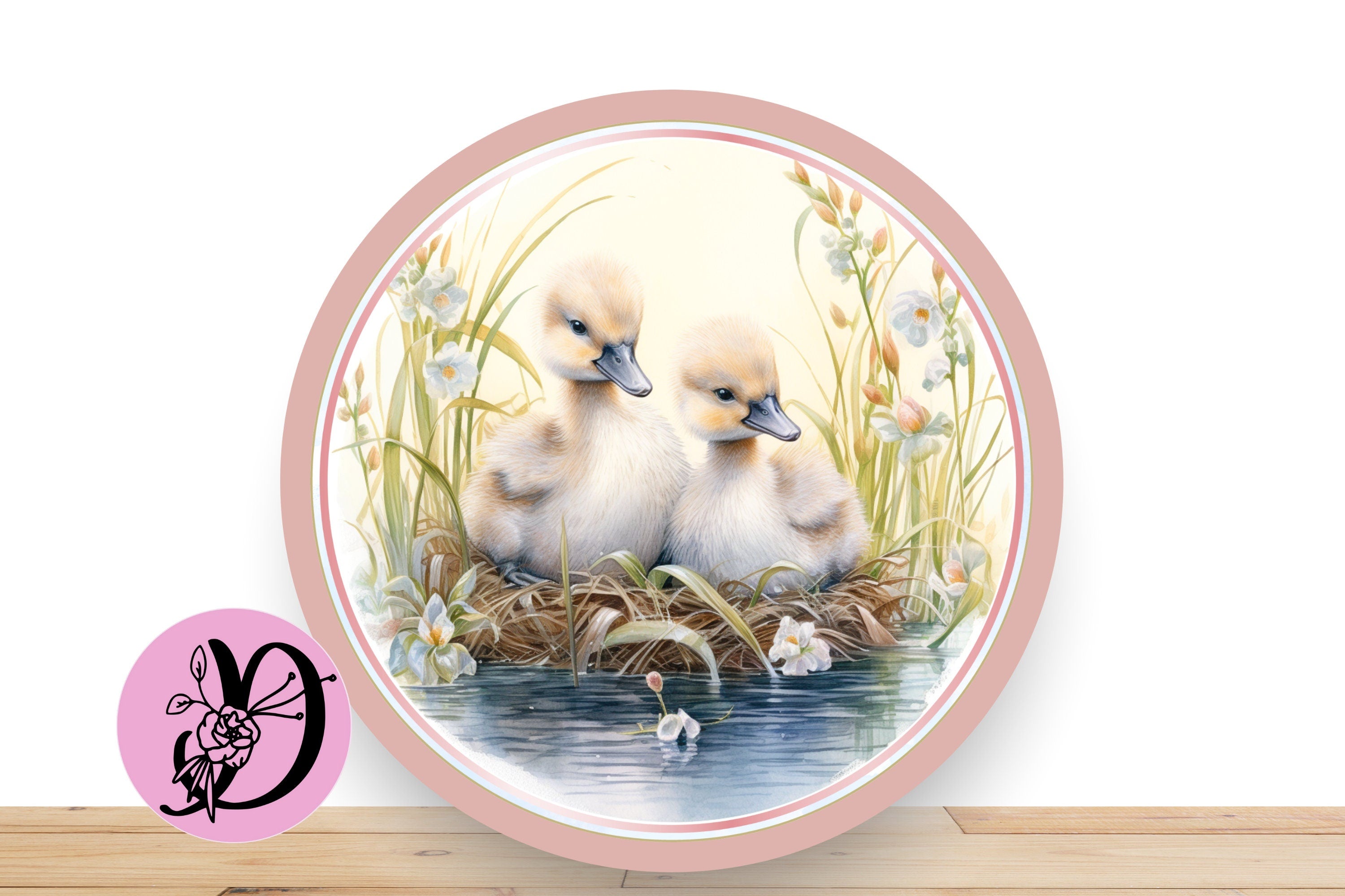 Celebrate the charm of spring with this delightful wreath sign featuring two adorable ducklings resting by a serene pond surrounded by blooming flowers. Perfect for Easter decor or seasonal wreaths, this sign adds a sweet and tranquil touch to your home or porch.