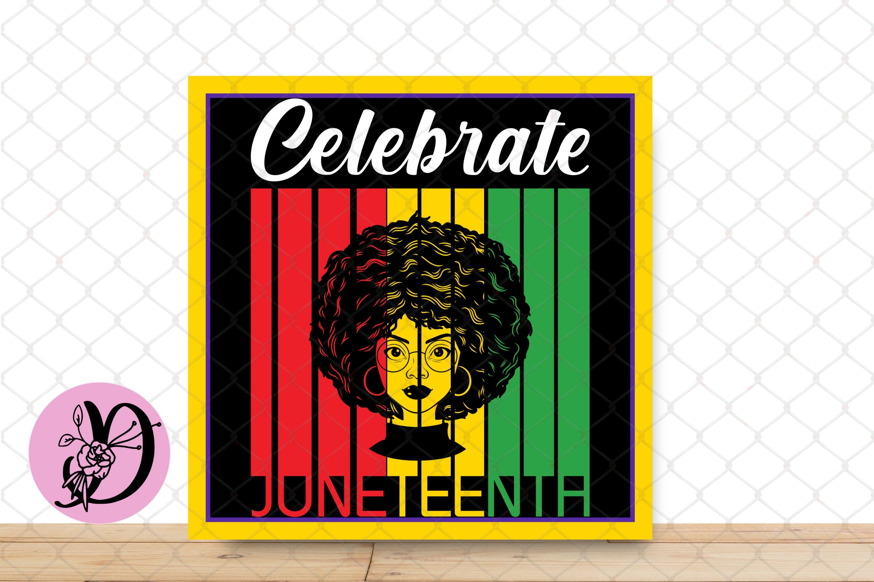 Honor freedom and culture with this bold "Celebrate Juneteenth" wreath sign. Featuring a striking Afrocentric design with Pan-African colors and a powerful illustration of a Black woman, this vibrant sign is perfect for adding a meaningful touch to your wreaths, home décor, or gifts.