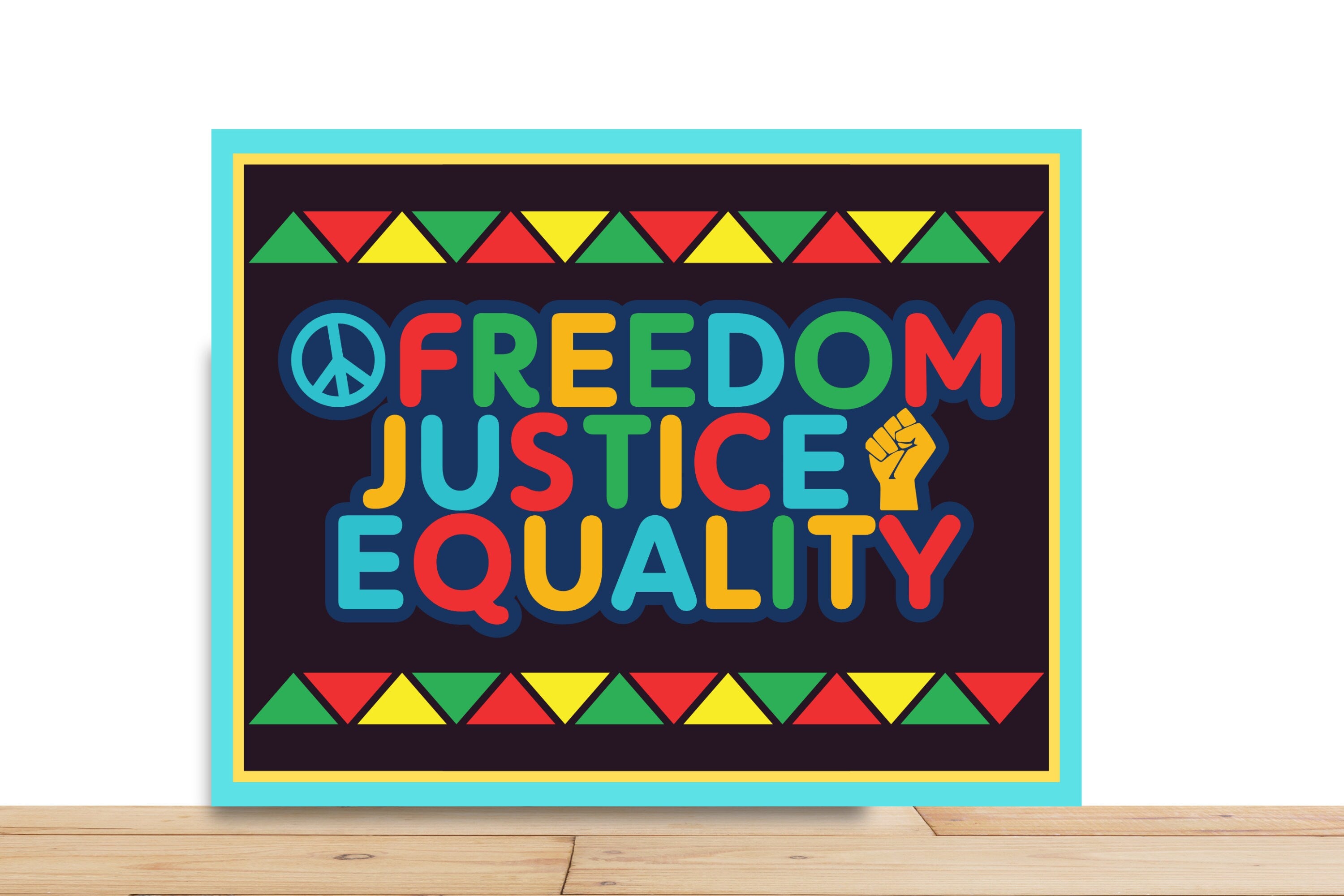 Make a bold statement with this "Freedom, Justice, Equality" wreath sign. Designed with striking Pan-African colors, geometric accents, and empowering symbols of peace and unity, this sign is perfect for honoring civil rights, celebrating heritage, or adding a meaningful touch to your wreaths and home décor. A vibrant tribute to justice and equality.