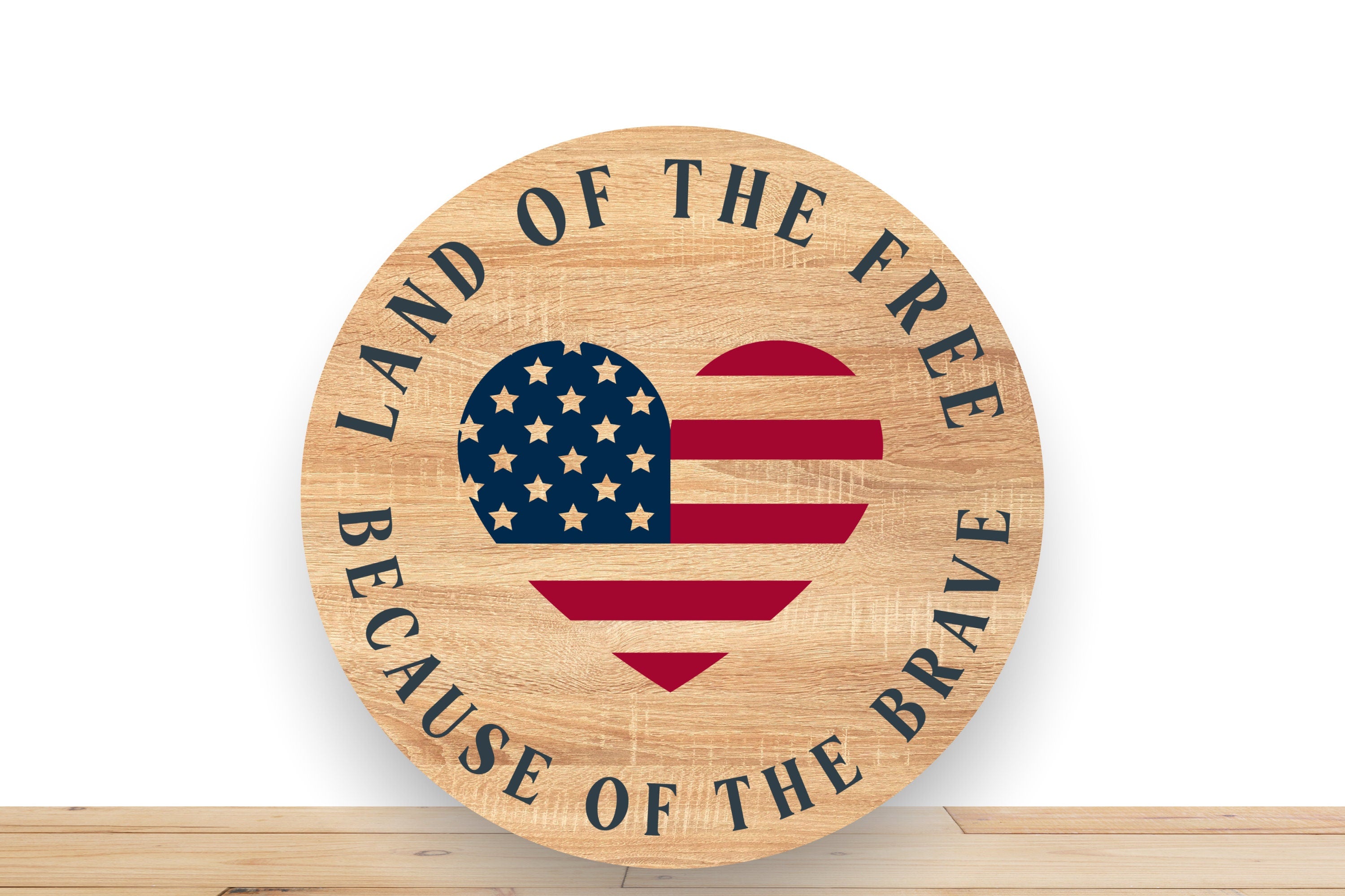 Celebrate American freedom and honor those who serve with this rustic "Land of the Free Because of the Brave" wreath sign. Featuring a heart-shaped American flag design on a wood-textured background, this sign is perfect for 4th of July, Memorial Day, or everyday patriotic decor. Add it to your wreath or display it as a standalone tribute to the brave.