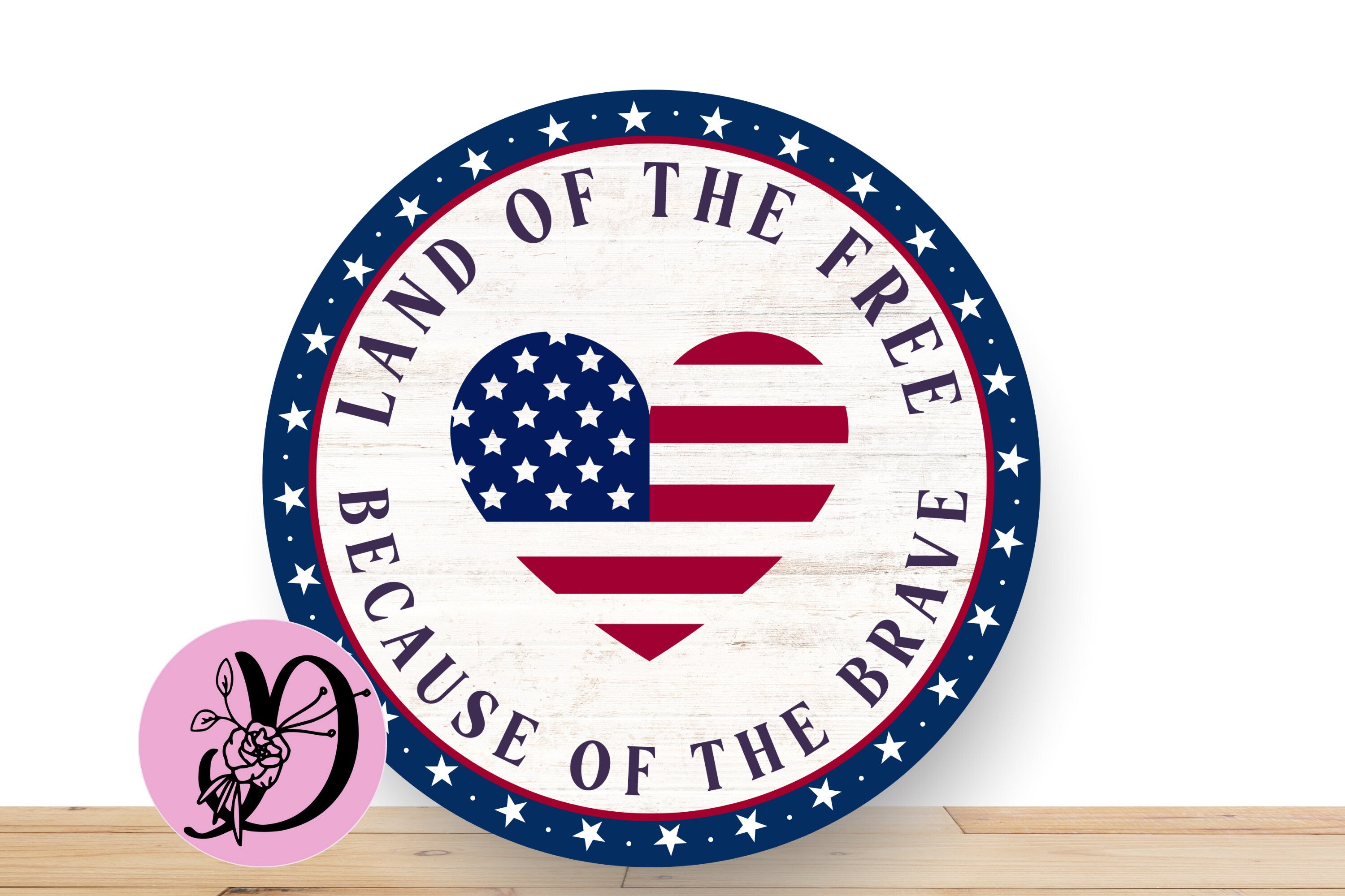 Celebrate freedom and honor our heroes with this patriotic heart-shaped wreath sign. Featuring the phrase "Land of the Free Because of the Brave", red, white, and blue stars and stripes, and a rustic background, this sign is perfect for Memorial Day, 4th of July, Veterans Day, or everyday Americana decor.