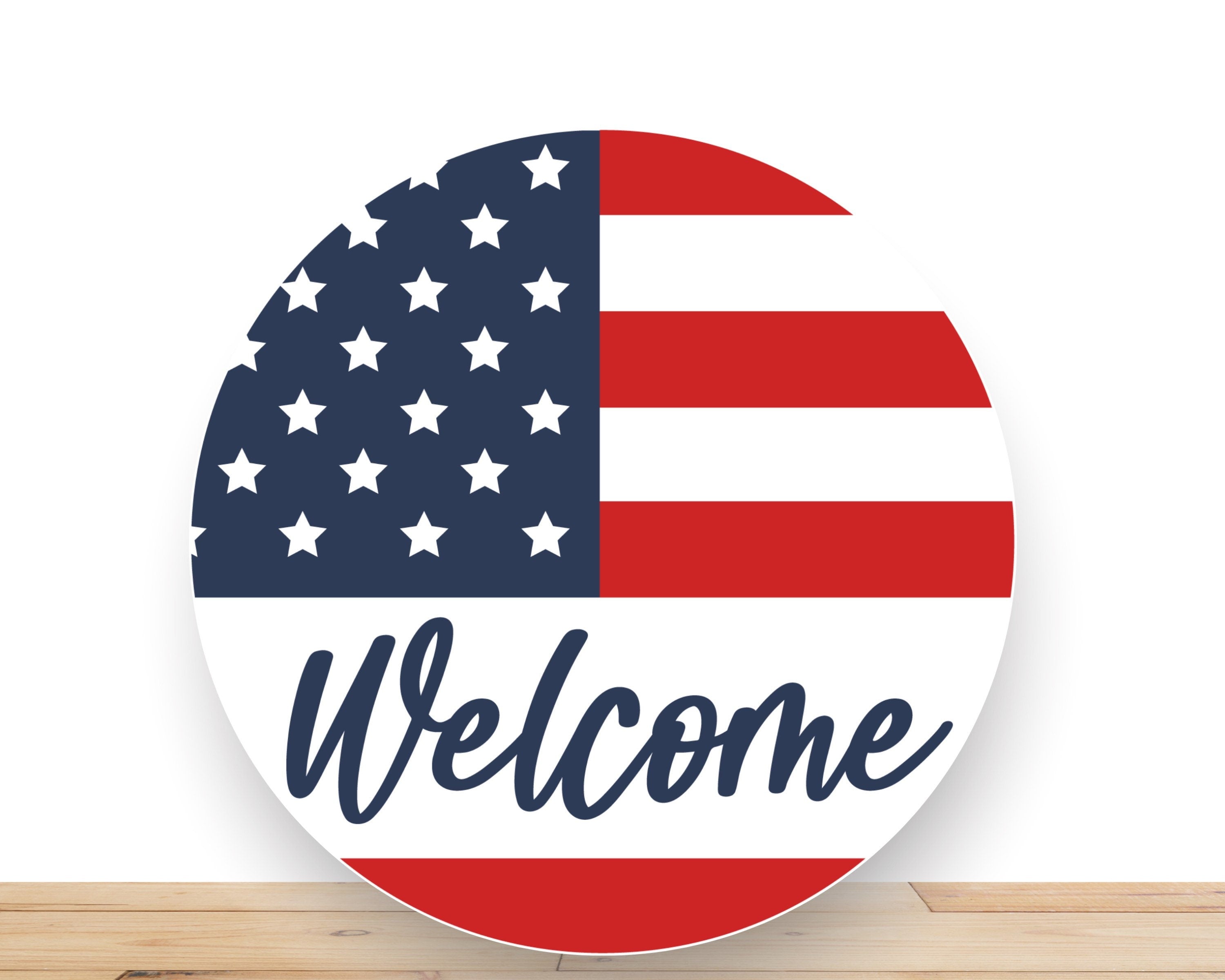 Add a patriotic touch to your front door with this "Welcome" wreath sign featuring a bold American flag design. Ideal for seasonal wreaths, Fourth of July celebrations, or everyday Americana decor.